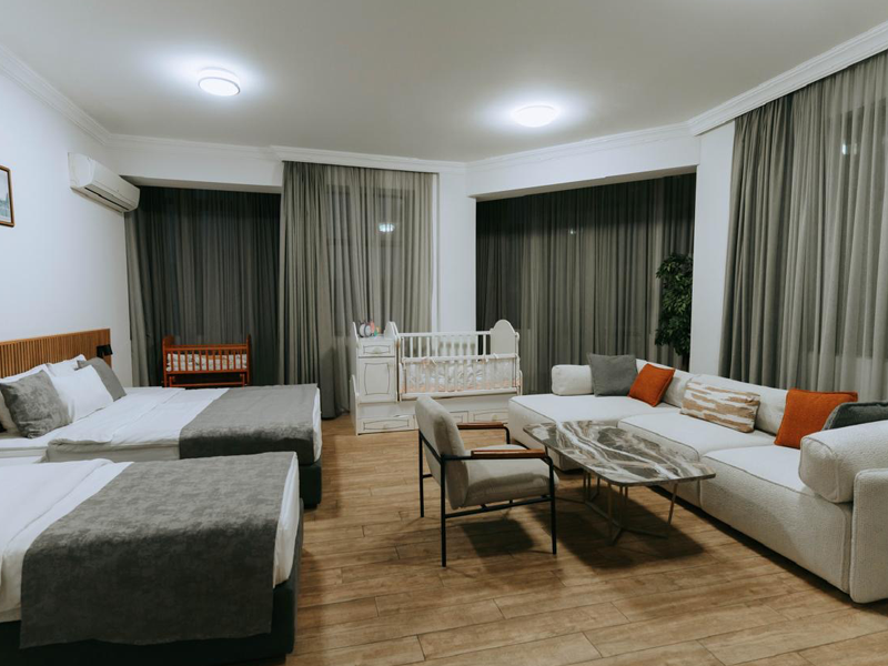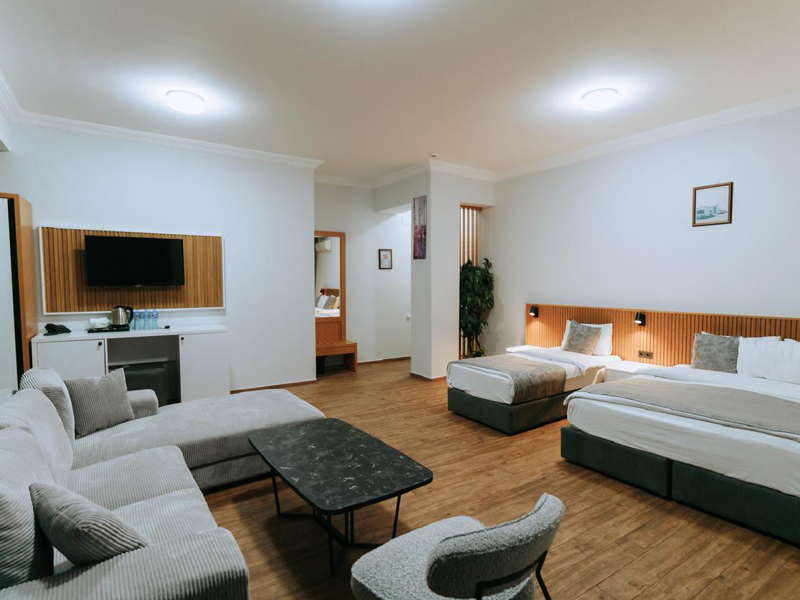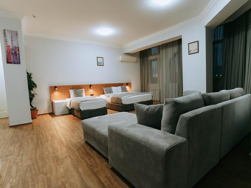 • 1 ორადგილიანი საწოლი + 1 ადგილიანი საწოლი + დივანი გასაშლელი